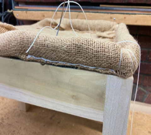 In this two day class students will learn some of the history of early American upholstery as it came to us from France by way of England and was adapted by colonial craftsmen with the materials that they could obtain both locally and from imported sources. We will discuss the simple tools and materials needed for both simple and complex work, including linen webbing, hessian (burlap) coir fiber, curled horsehair, cotton wadding, and calico (muslin). Students will complete a simple footstool using hand tacking and hand-sewing techniques in the English style as described by David James in his book “Upholstery, A Complete Course”.
